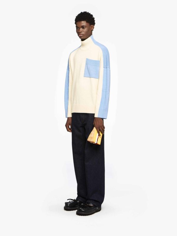 Men JW Anderson Knitwear | DUAL TONE PATCH POCKET TURTLENECK SWEATER Ivory/sky Blue