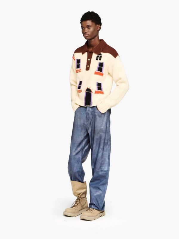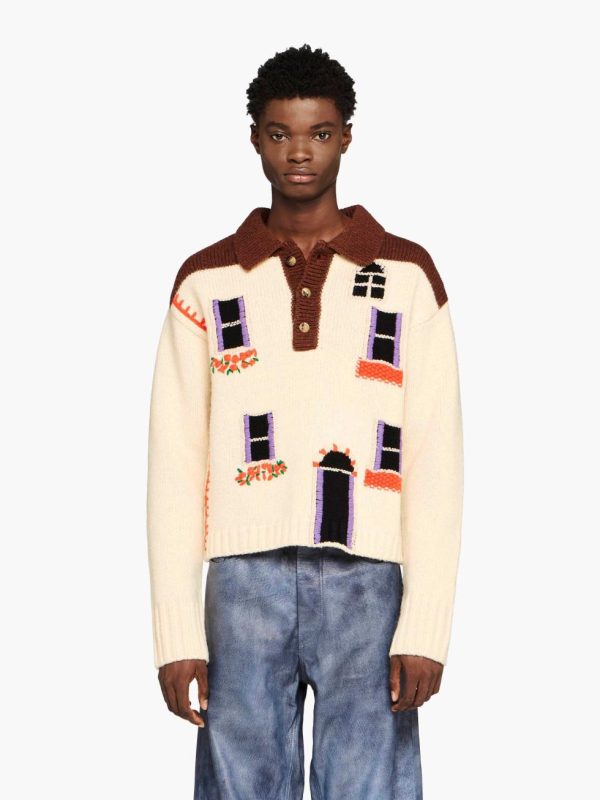 - Knitted polo style sweater complete with intarsia “House” design