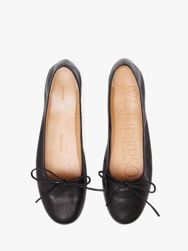 Women JW Anderson Flats | ROUND-TOE LEATHER BALLERINAS Black