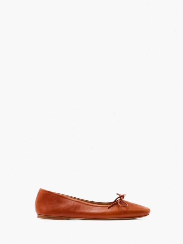 Women JW Anderson Flats | ROUND-TOE LEATHER BALLERINAS Tan