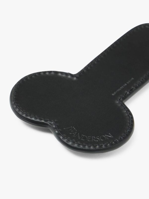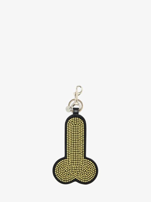 - Leather penis keyring complete with contrasting yellow crystal embellishment
