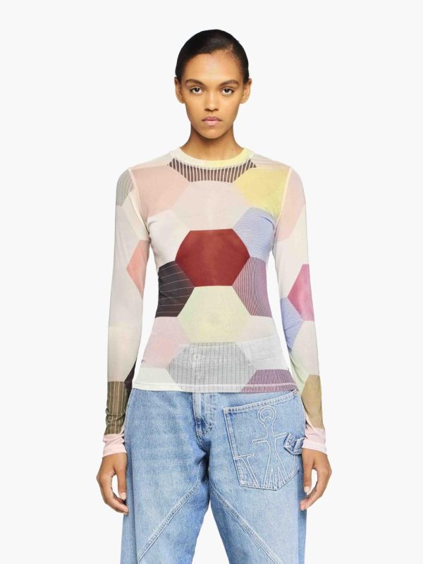 Women JW Anderson Tops & Shirts | ‘PATCHWORK’ PRINT SHEER LONG SLEEVE TOP Multi